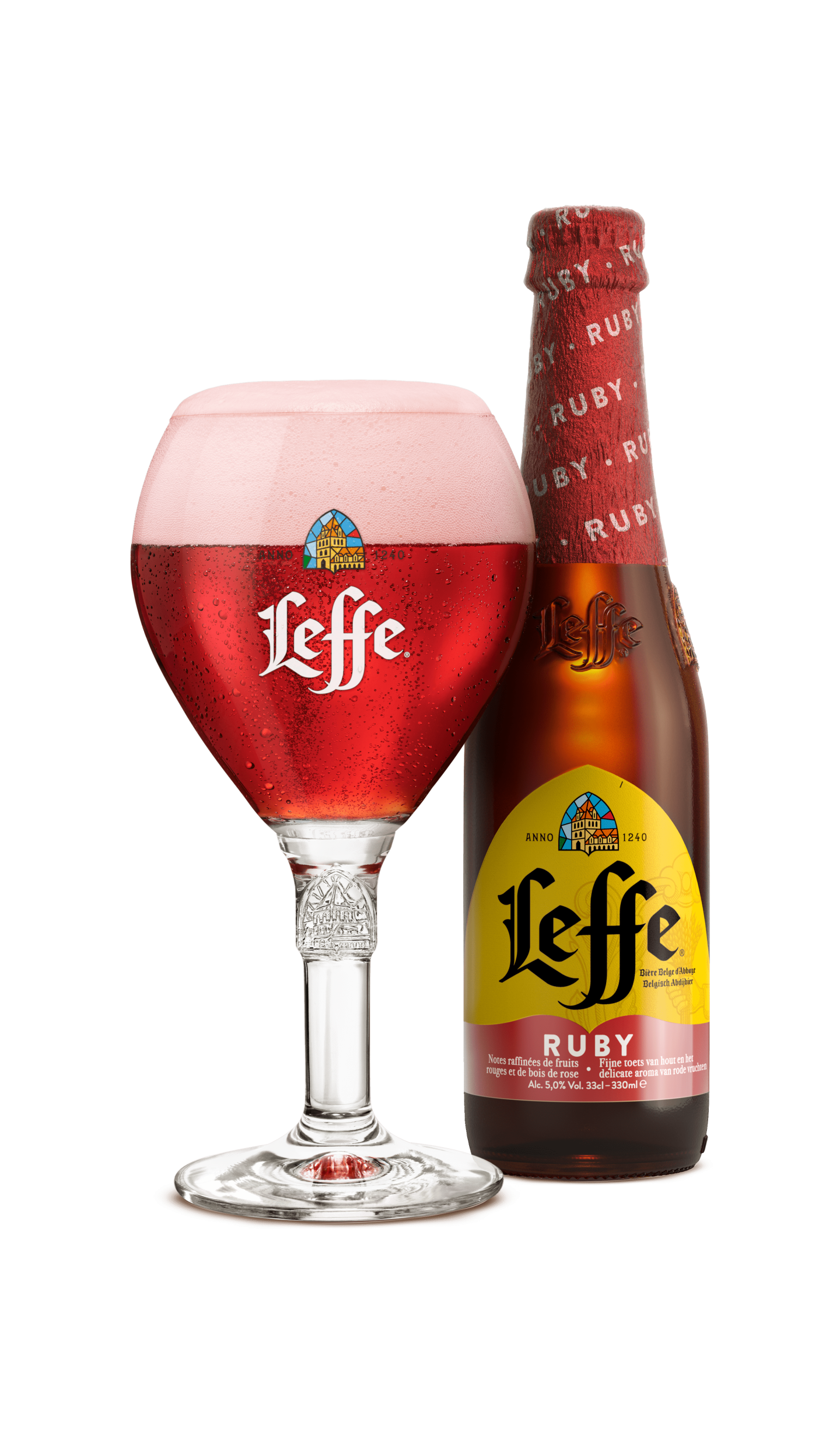 Leffe Ruby is the first abbey beer ever to be combined with red fruit. It is light, mild and very aromatic, with a refreshing and slightly spicy flavour. The subtle hints of rosewood make this a perfectly balanced beer.